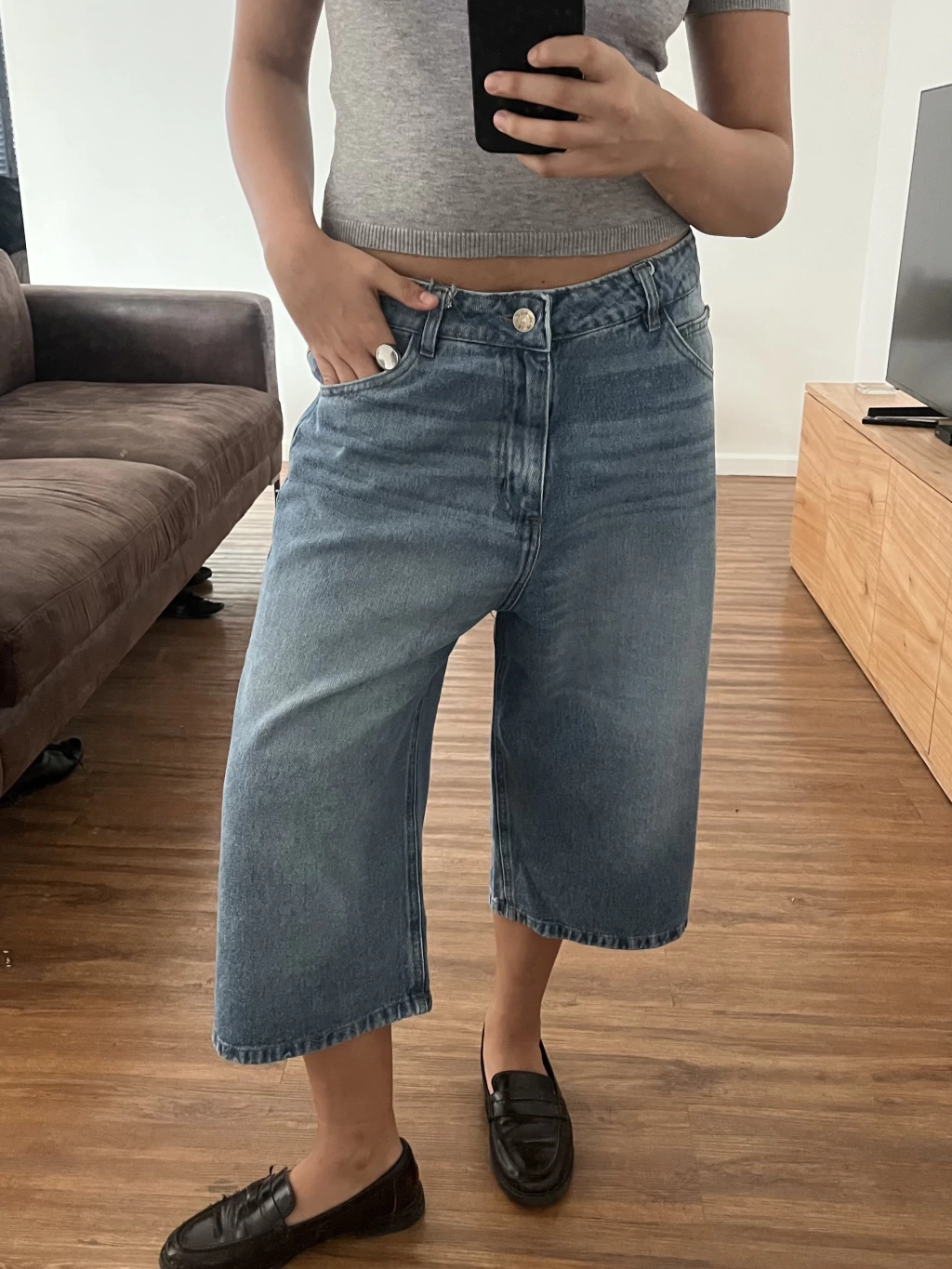 Confeccionada en denim 100% algodón mantiene una estructura firme que define sin perder la comodidad, que es uno de nuestro pilares. Su largo midi aporta un estilo noventero pero clásico. Calce medio bajo.